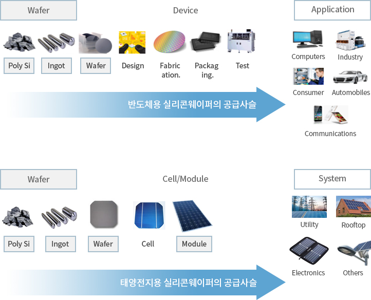 실리콘웨이퍼는 현대문명의 쌀이라는 반도체, 에너지의 혁신을 가져오고 있는 태양전지 등 지금의 눈부신 기술문명은 실리콘웨이퍼라는